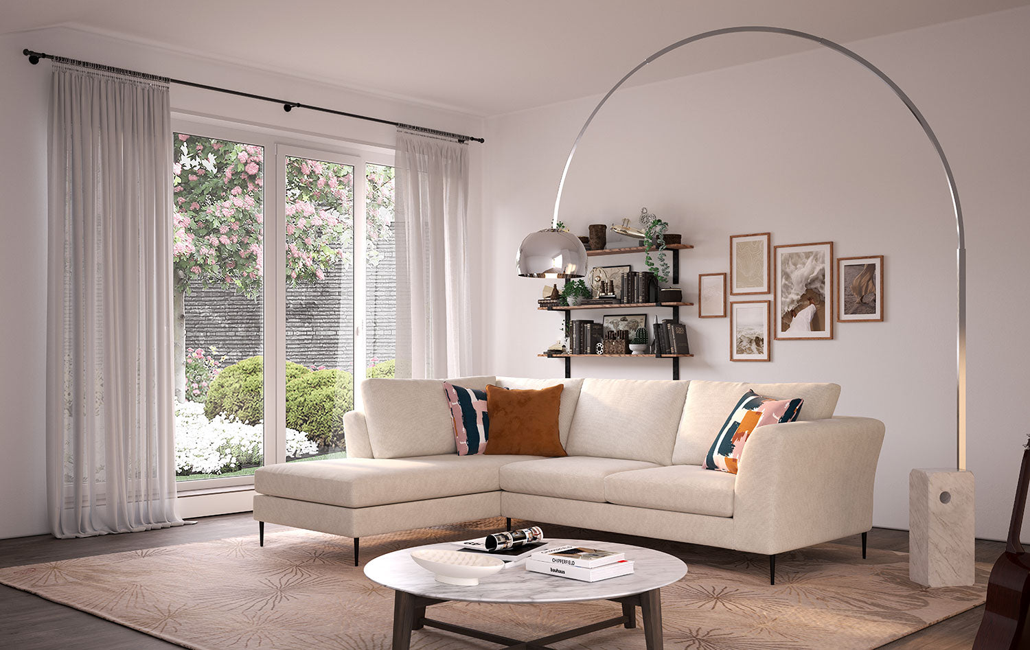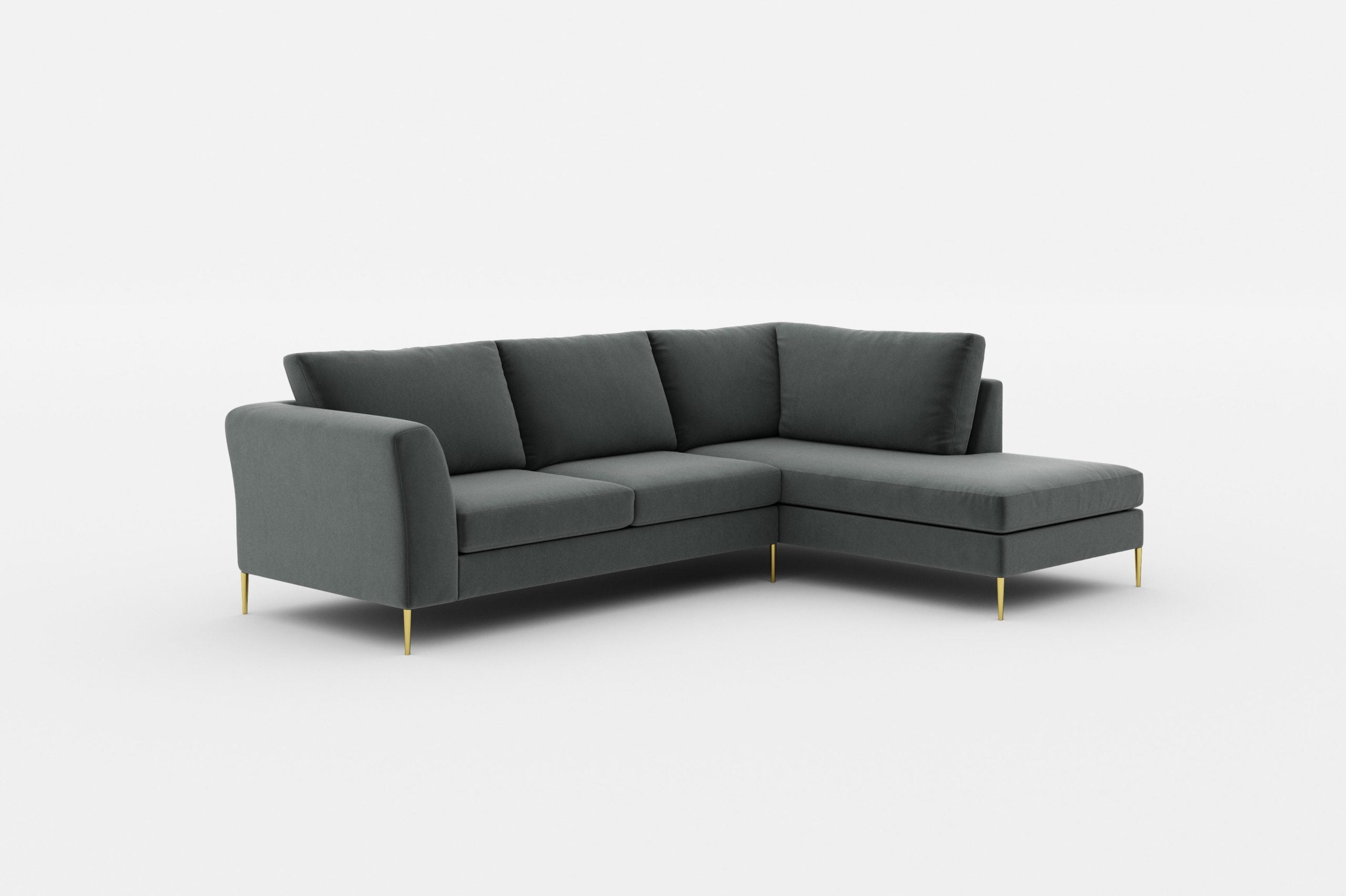 Les accoudoirs courbés et angulaires font de cette collection de canapés modulaires tendance un favori moderne. Dossier à coussin amovible. Construction écologique. Structure en bois séché au four certifié durable. Mousse de polyuréthane MicroGel à base de soja avec revêtement en fibres. Système de ressorts à fil sinueux.