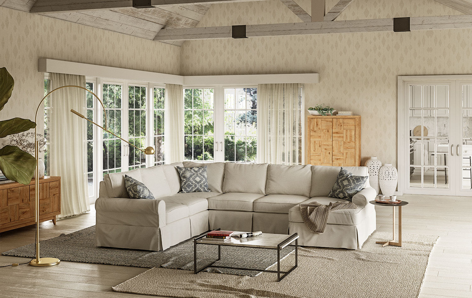 Ce canapé d'angle confortable s'adapte à votre style de vie. Sa housse plissée ajoute une touche traditionnelle à votre confort. Construction écologique. Structure en bois séché au four certifié durable. Mousse de polyuréthane à base de soja MicroGel enveloppée d'un mélange de plumes. Système de ressorts ensachés.
