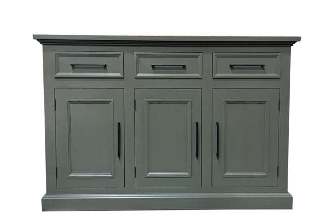 Refined storage with a purpose. The Alexandria Sideboard reimagines the traditional sideboard for today’s homes—where space efficiency and elegance must coexist. At just 17” deep, it’s perfectly sized for hallways, dining rooms, or open-concept spaces, without compromising on storage or impact. Standing 41” high, this piece offers a comfortable serving height, while the clean lines and elevated craftsmanship reflect its solid wood and veneer construction. Inside, a full-width interior shelf and soft-close drawers provide functional organization, while exterior wood knobs can be customized to suit your style. Whether used for dinnerware, linens, or everyday essentials, this sideboard delivers quiet sophistication and versatility.