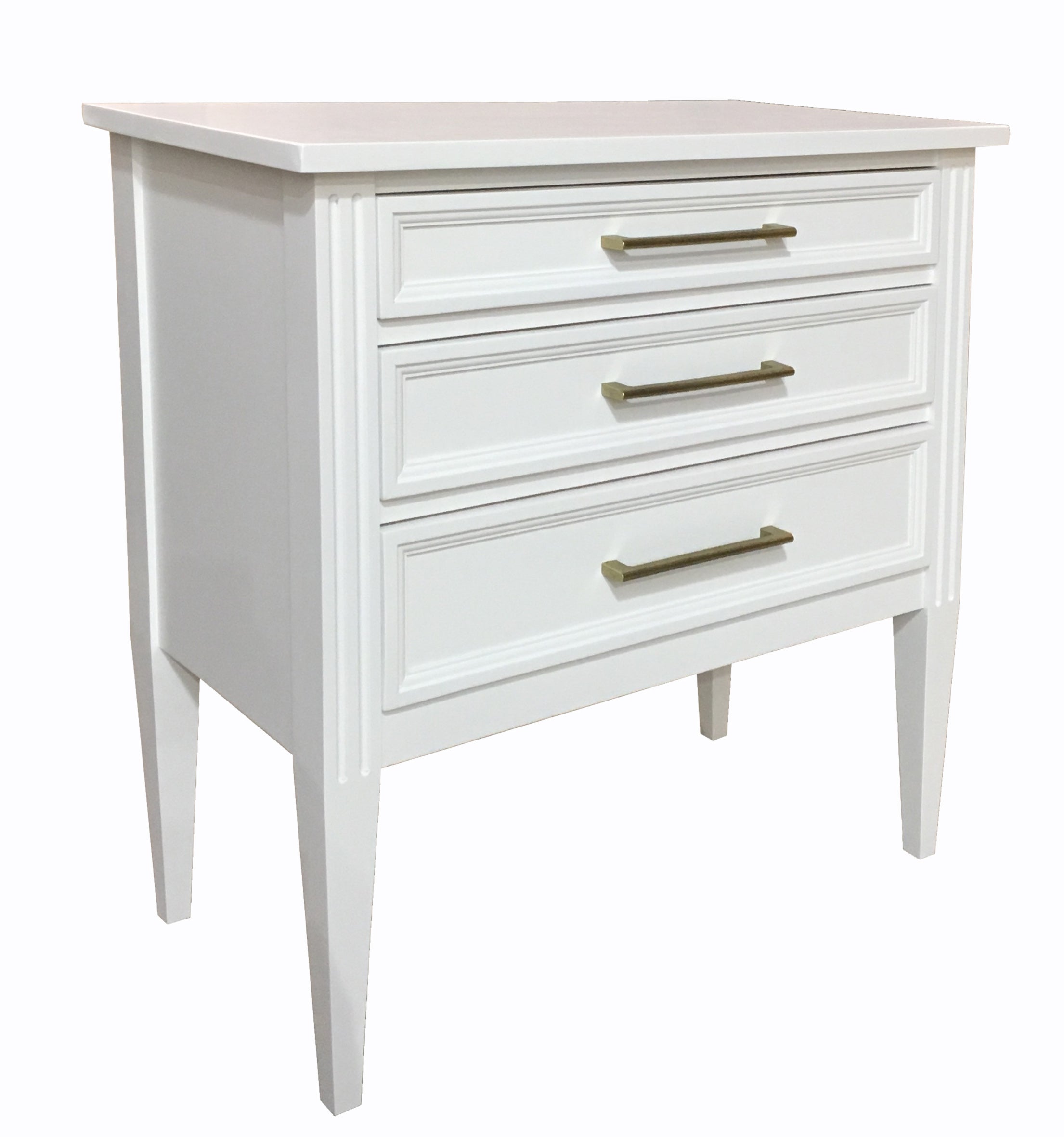 Slightly wider and deeper than the standard model, the Cherbourg King Triple Nightstand offers a more generous top surface while maintaining the same graceful, vertical silhouette. With three drawers for bedside storage and a refined profile, it’s a natural fit in both classic and contemporary bedrooms. Thanks to its versatile size and timeless design, this piece also works beautifully in small hallways or as a standalone accent table. Built entirely from solid wood for durability and longevity. Dimensions: 32” W x 16” D x 32” H