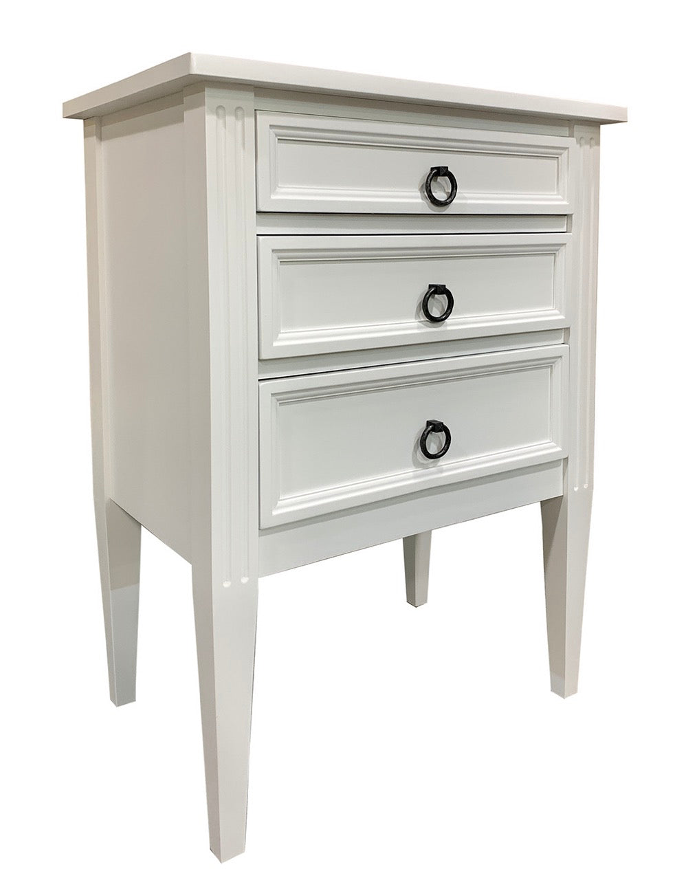 Tall, elegant, and endlessly versatile, the Cherbourg Triple Nightstand blends classic proportions with practical storage. With three smoothly operating drawers and a narrow footprint, it’s ideal beside a bed—but also works beautifully in a hallway, small entry, or even as a compact side table in a living space. As always, it’s crafted from solid wood and finished to suit your style. Pair it with one of our beds, or let it complement your existing furniture with quiet sophistication. Dimensions: 24” W x 14” D x 32” H