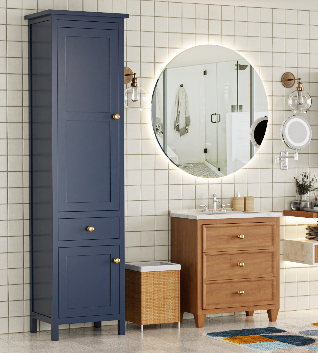 Perfect for smaller powder rooms or guest bathrooms, the Cottage Vanity blends compact practicality with timeless charm. Though it appears to have three drawers, the front is actually a single door—concealing a spacious interior that allows plenty of room for plumbing, including the P-trap, while also offering convenient storage. Crafted from solid wood, this vanity can be finished in the colour of your choice and paired with your preferred hardware. An optional all-in-one sink and countertop is available to simplify installation. Dimensions: 39” W x 18” D x 34” H Sink Space: 26” W x 18” D Details: Faux-drawer front door; customizable finish and hardware