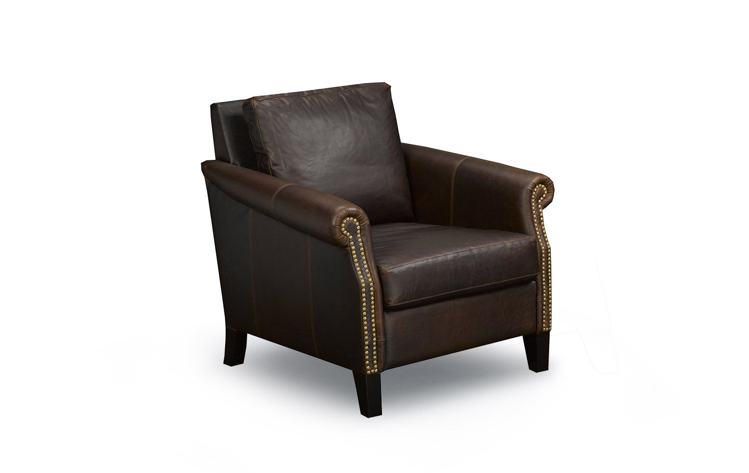 Rolled arms, nailhead trim, and loose-back seating give this chair a stunning style. Available as a sofa collection. Eco-friendly construction. Certified sustainable, kiln-dried wood frame. Feather wrapped MicroGel soy-based polyfoam. Web and coil spring system.