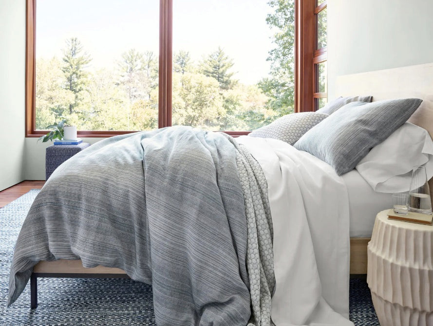 Housse de couette Sterling Stripe Linen Blue inclus 2 caches oreiller