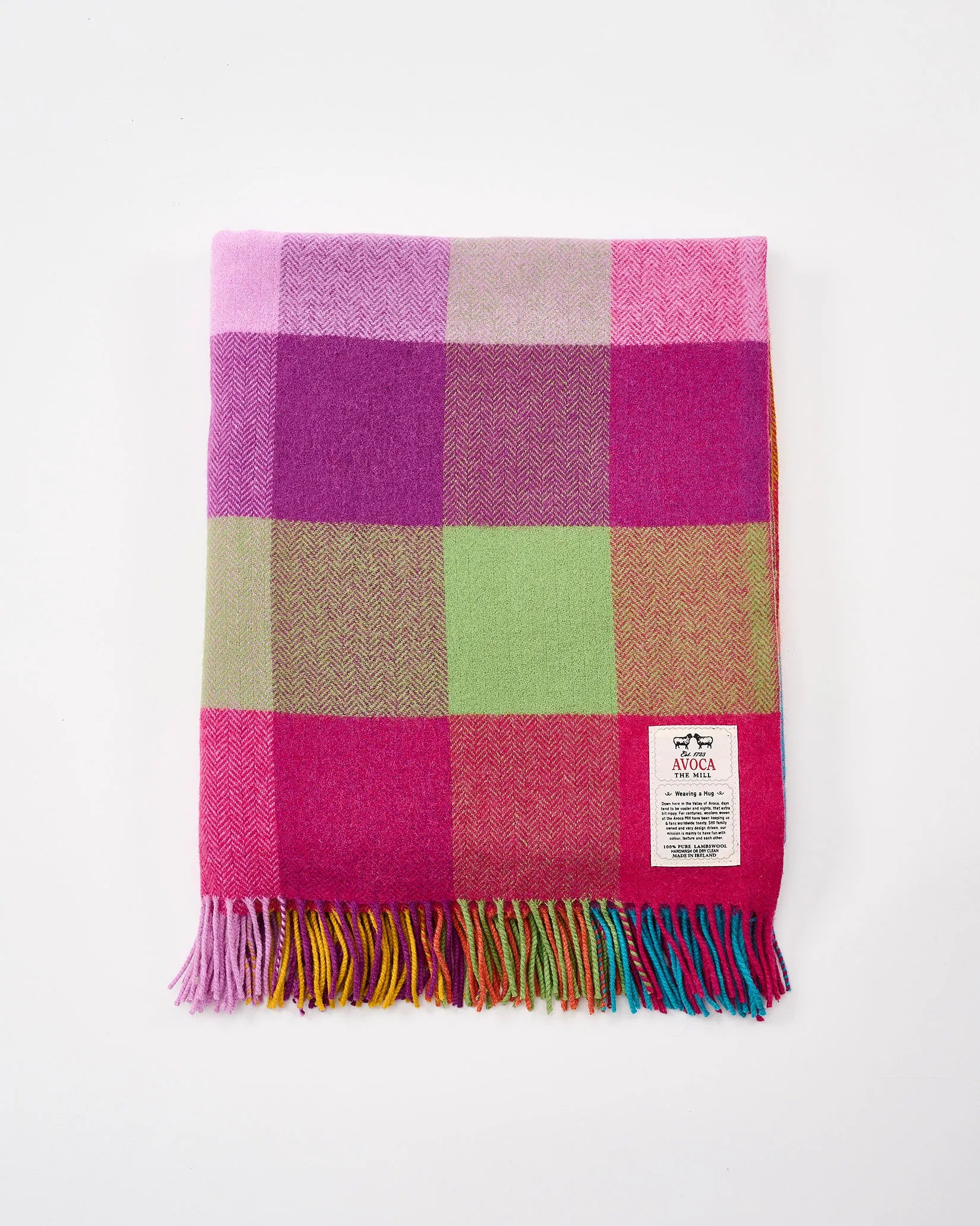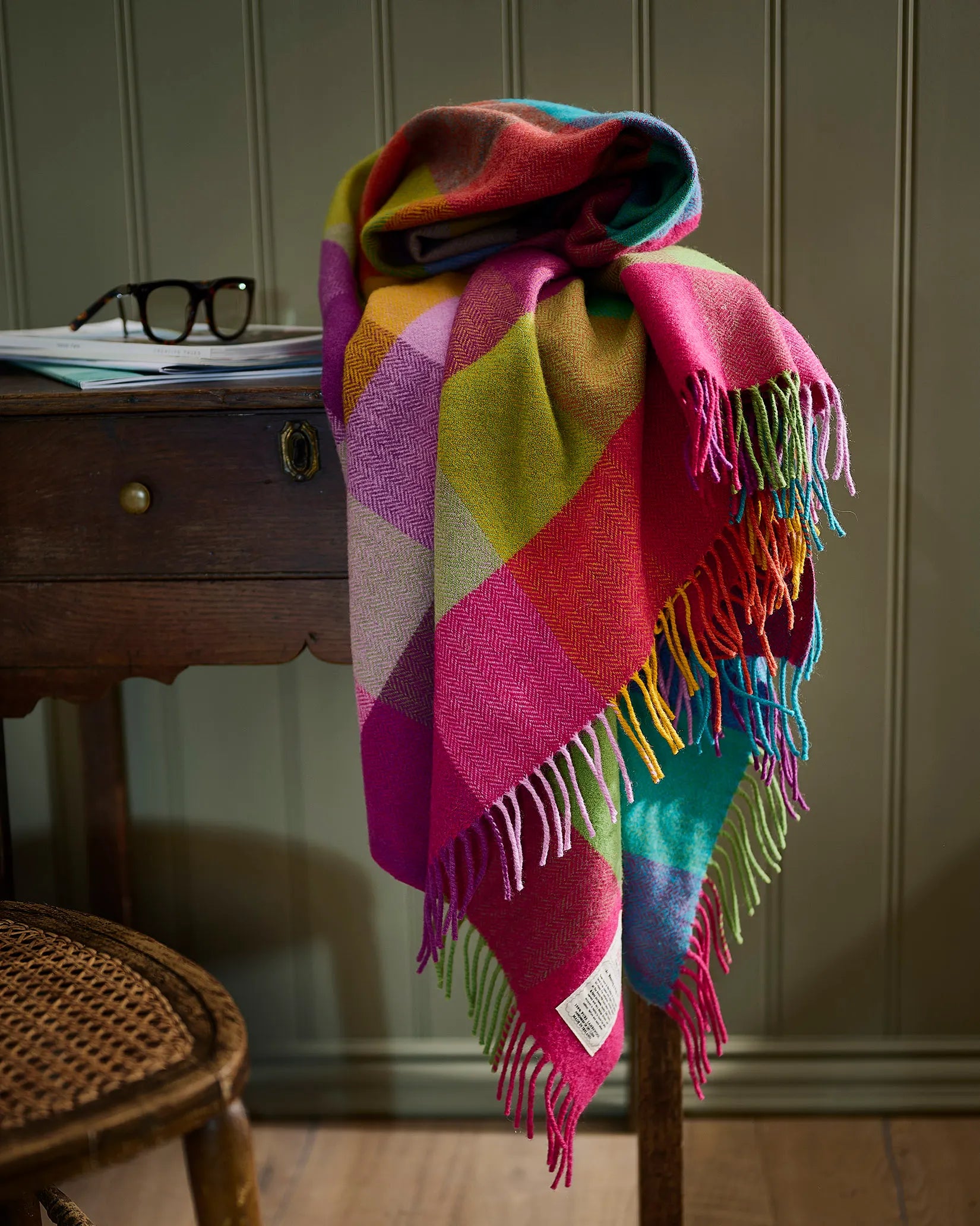 The Circus lambswool throw features a rainbow of colours in a subtle herringbone weave. Guaranteed to add a cheerful splash to your living space, the lambswool fabric makes it perfectly soft and cosy to wrap up with.