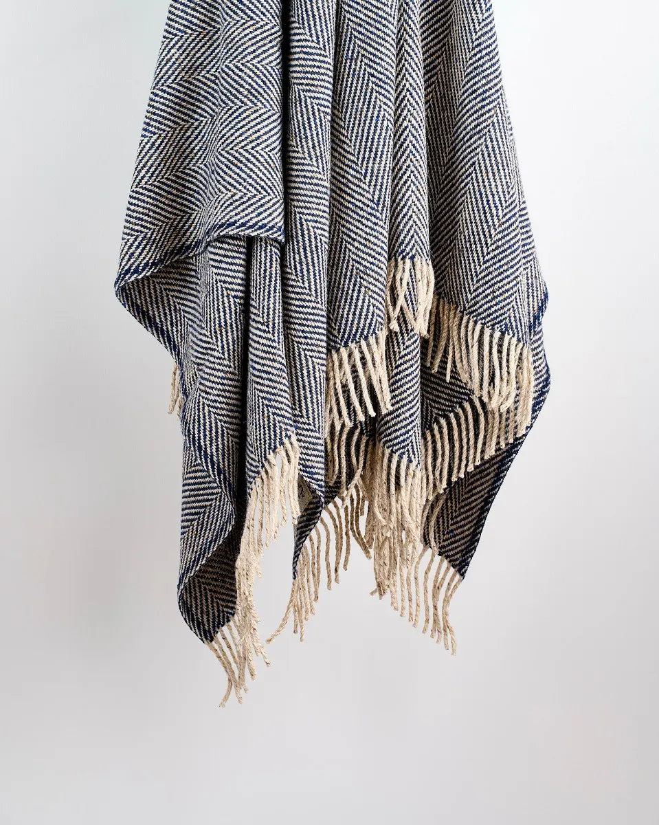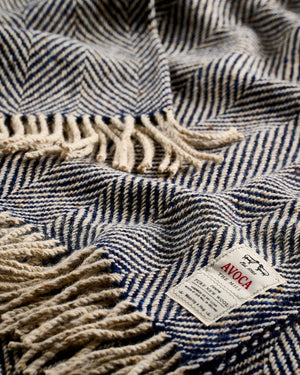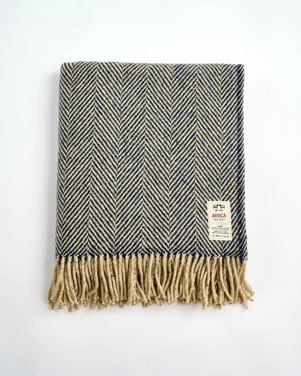 In a rich palette of navy and oatmeal, this luxurious throw suits any interior. It is woven from thick Donegal yarn in a timeless herringbone pattern and finished with chunky fringing, adding both warmth and rustic elegance to your space.