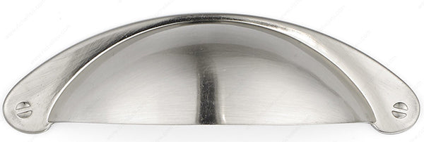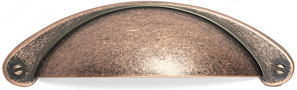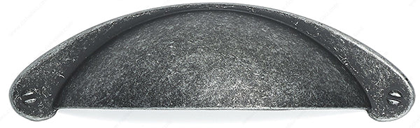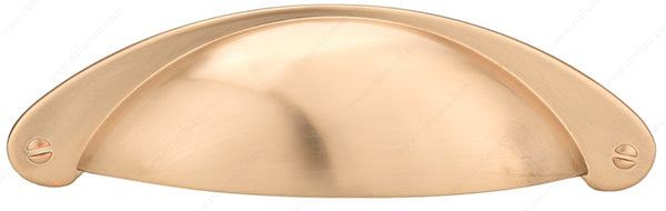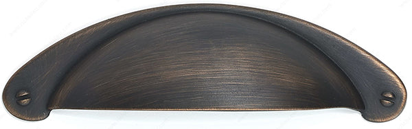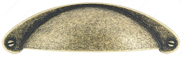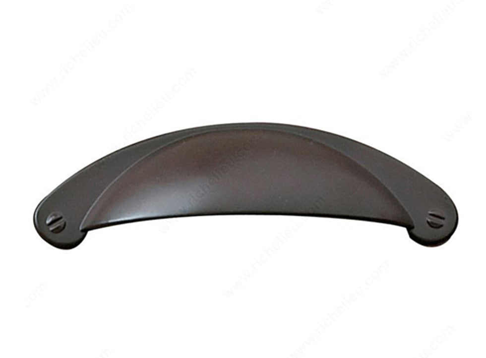 This traditional solid metal cup pull is available to compliment either the concentric knob or ring pull, or it can be ordered on its own. Please verify that the quantity that you order is sufficient for your pieces of furniture. It is just a little shorter than 5″ long x 1″ tall and projects 1″.