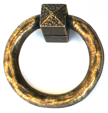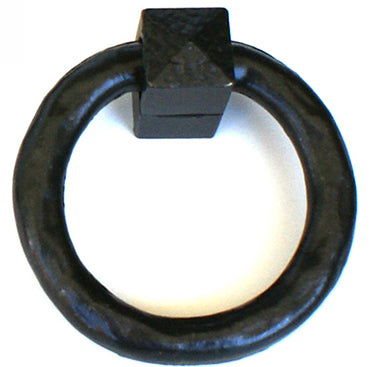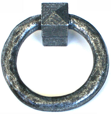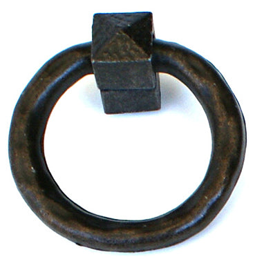 This solid metal ring pull can be used for either doors or drawers. For dresser drawers, it is a good idea to have two pulls per drawer, but drawers that will hold lighter items can have only one. 1 3/4″ round. It is also available in black finish.