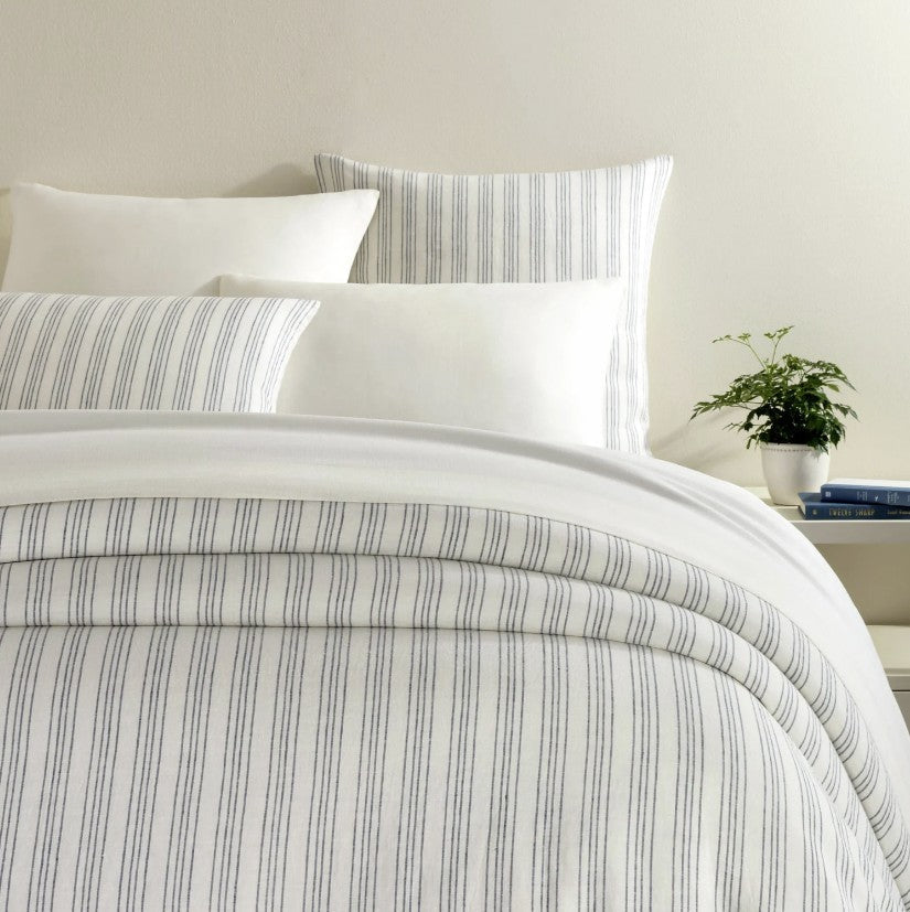 Lush Linen Stripe Slate Blue Duvet Cover includes 2 standard pillow shams - Queen or King